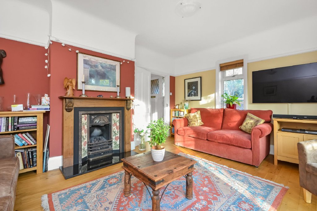 SITTING ROOM 16' 1" into bay window x 13' 5" (4.9m x 4.09m) Double glazed bay window overlooking garden with twin central doors and windows to either side, two radiators, matching oak flooring, central chimney breast with wood surround fireplace, cast iron inlay with tiles, granite hearth and living flame coal effect gas fire (not tested), infinity ceiling, picture rail, double glazed window to side aspect, dimmer switch.