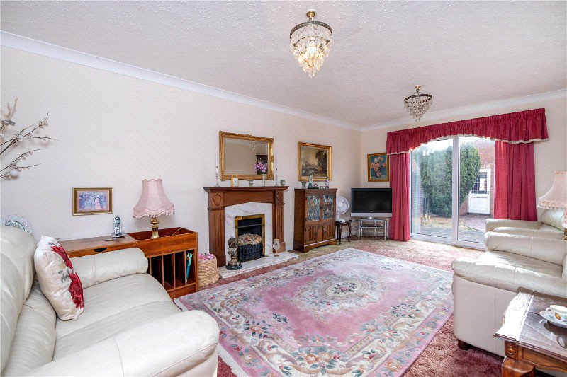 18’6 x 11’4 a long light sitting room with UPVC window to the front aspect and sliding patio doors onto the southerly facing rear gardens, feature fireplace, radiator, power points and TV point.