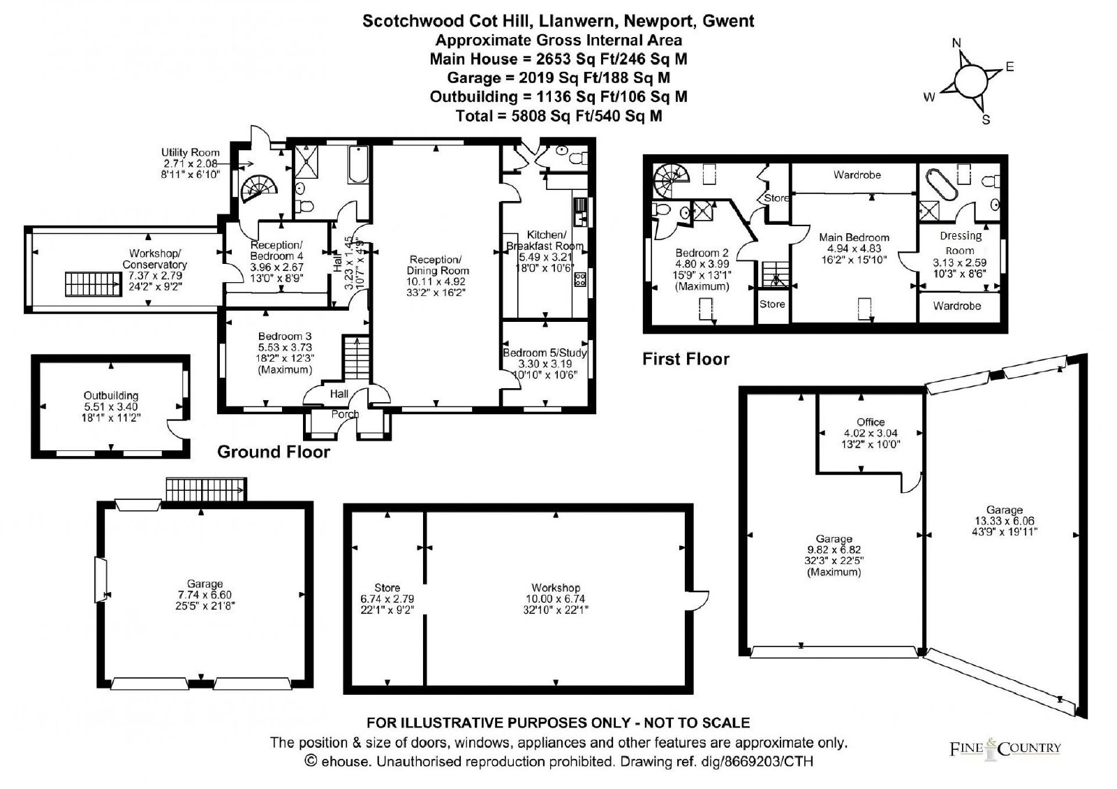 - Significant out buildings, large workshop, two barns, greenhouses, potting sheds
