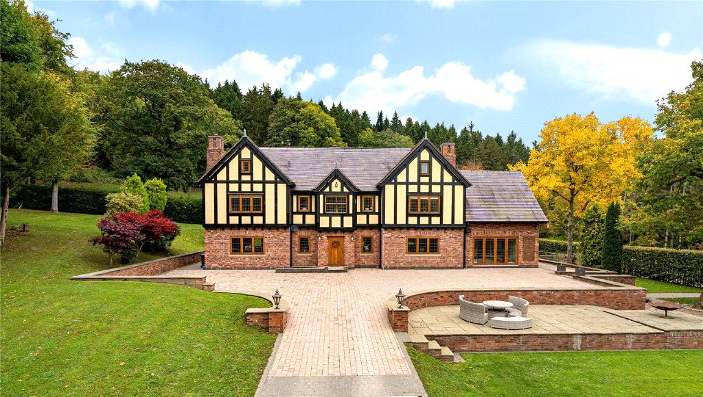 Quite possibly a once in a lifetime opportunity to acquire this remarkable home, set in approx. 21.6 acres. Ridgway Hall sits within an area of Outstanding Natural Beauty, painting that picture of an incredibly enviable lifestyle. Completed in 2019, this contemporary and individually designed family home offers immense versatility and provides the dream that so many aspire to. Internally, the immaculate accommodation includes Dining Hall, Living Room, Breakfast Kitchen, Snug, Utility Room, Cloakroom, Boot Room, an impressive Galleried Landing, Four Double Bedrooms, each with En Suite, and Attic Rooms offering further potential. Externally, Ridgway Hall is surrounded by attractive woodland, providing an absolute paradise for those wanting to take leisurely country walks within their own grounds. Of huge asset are the Outbuildings - idyllic for a multitude of buyers, from vintage car enthusiasts, etc. A Triple Bay Garage currently consists of an Office, WC, Training Room and with a Self-Contained Annexe above with Living Room, One Bedroom & Bathroom. A further Four Bay Garage currently consists of a Double Bay (ideal for tractor shed, etc.), Hay Store, Workshop with Kitchen Area and First Floor (this extends to the full width and length). Tucked away, a Summerhouse lends itself as an ideal Yoga Room, Studio, etc. Within the grounds are two grazing fields, along with a further two woodland paddocks, currently used for horses, along with the fantastic addition of a winter turnout pen and shelters. Ridgway Hall is the absolute epitome of that 'escape to the country', hidden within its own incredible grounds and offering so much opportunity with the range of outbuildings. A true delight and privilege to bring to the market. Energy Rating E