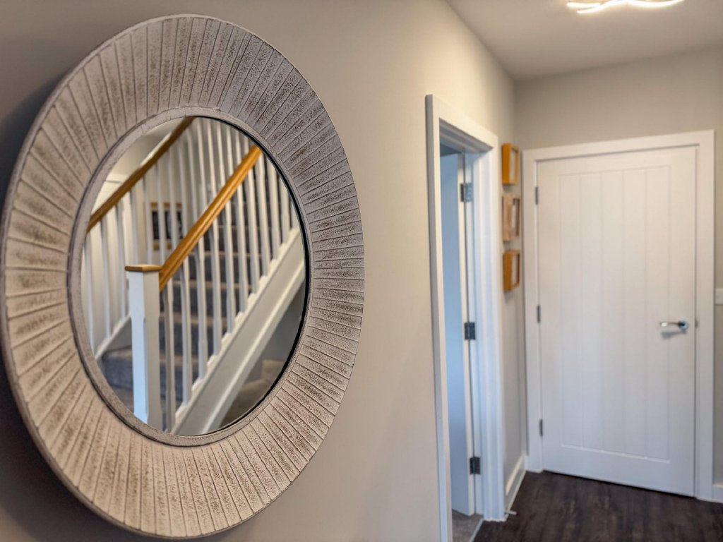 To the front of the property, there is access to a double garage and off-road parking, ensuring practicality alongside style.