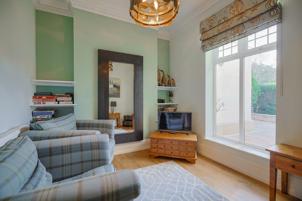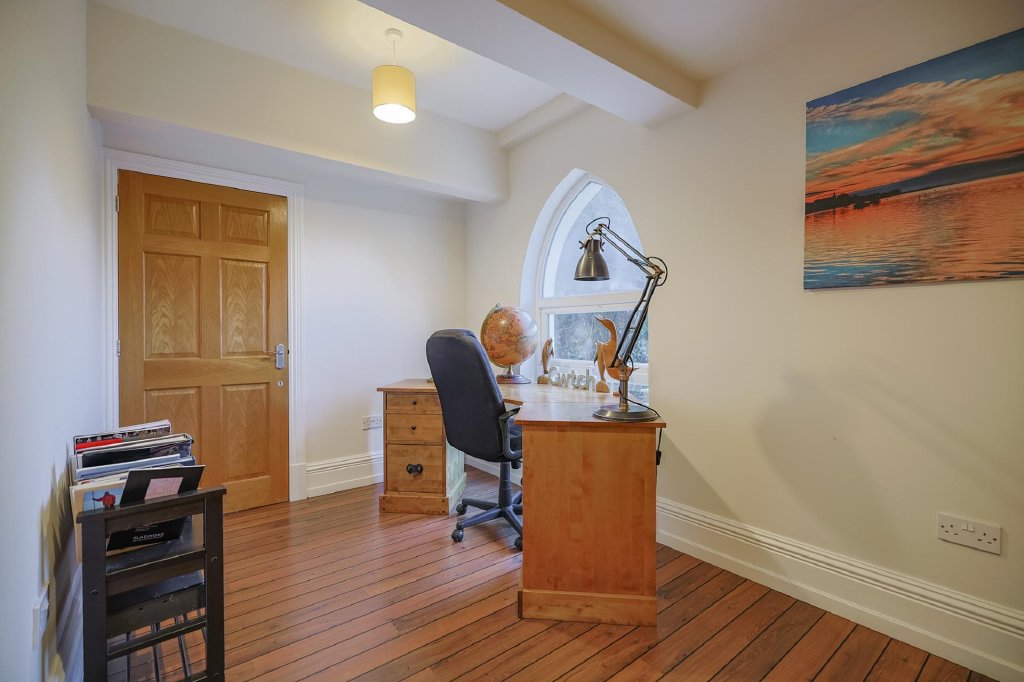 This charming snug enjoys a large rear window overlooking the patio, filling the room with natural light. Oak flooring, warm outlooks and two alcoves with fitted shelving make this a perfect cosy retreat.