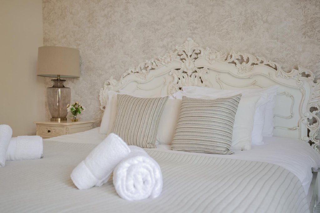 The impressive principal bedroom is laid with oak flooring and features high ceilings with detailed coving and a ceiling rose. Double doors, flanked by windows, open out onto a private balcony overlooking the grounds. This naturally bright space is complemented by a private en-suite, furnished with a WC, wash basin, walk-in shower, heated towel rail, tiled flooring, tiled walls, spotlighting, extractor fan and a frosted window.