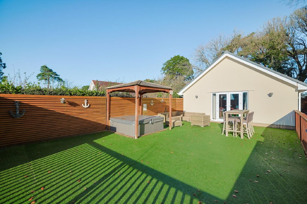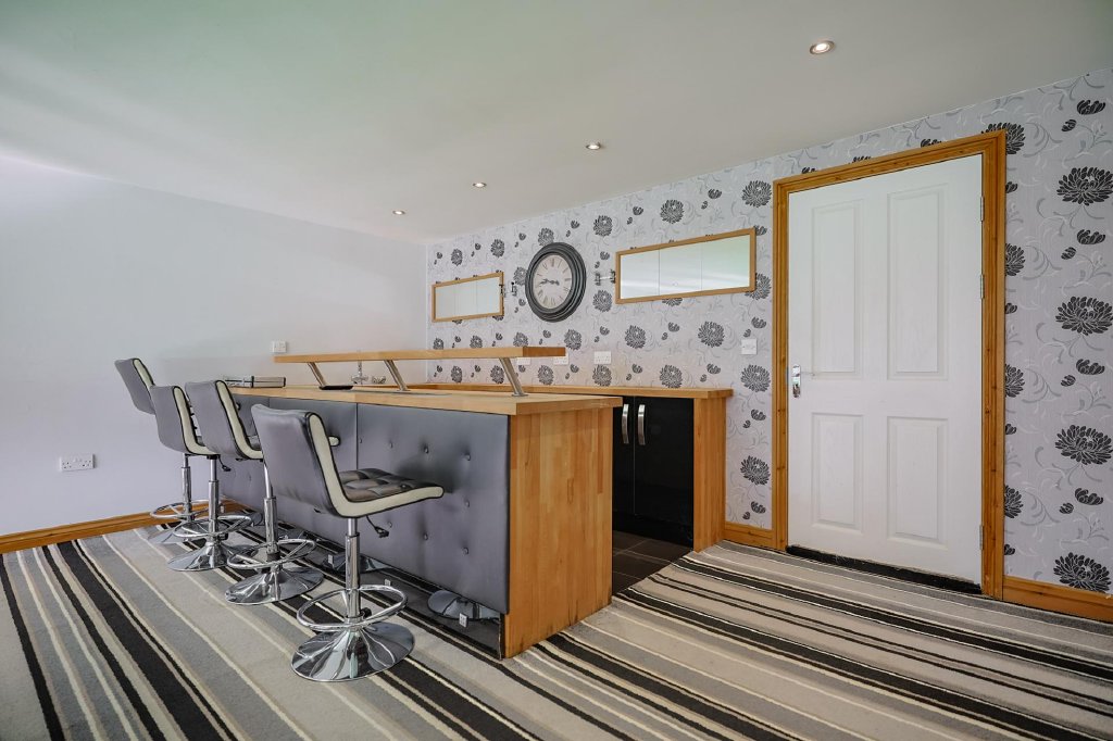 The Pines further benefits from a detached single garage with an up-and-over door, along with a superb recreation room. This versatile space features carpeted flooring, spot and central lighting, and heating. The stylish bar area includes storage units, oak tops, a stainless-steel sink with drainage, space for three under-counter appliances and seating for four bar stools—making it the perfect entertainment zone. The room offers integral access to the garage and includes a shower room furnished with a WC, wash basin, shower cubicle, extractor fan, heated towel rail, tiled flooring and partial tiled walls. Double patio doors open out to an enclosed decking area laid with AstroTurf, complete with external lighting, power and an undercover hot tub area.