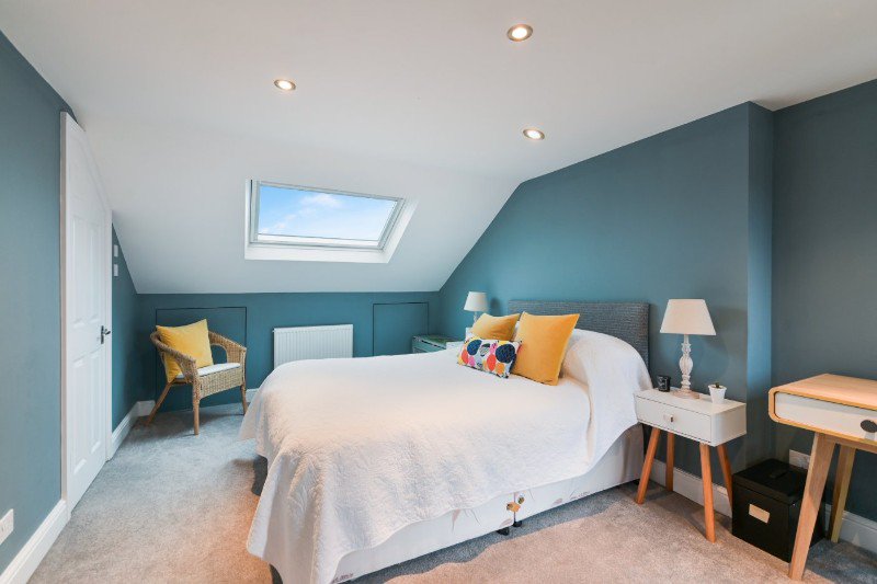 The through reception is a welcoming space, naturally lit by a bay window and enhanced by a log burner. The kitchen and dining area is ideal for entertaining, with sleek cabinetry, Quartz worktops and high-quality appliances, flowing into a bright garden room. Upstairs, five double bedrooms are arranged over two floors, complemented by stylish family bathroom and separate shower room. To the rear, the landscaped garden offers a private retreat with Indian flagstone paving, flower beds and downlighters.