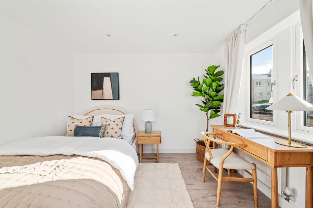 The entrance leads through to a spacious Lounge with Julliet balcony over looking the rear garden. A Study / Snug and WC / Cloaks also occupies this floor. The Hall leads down to an open plan kitchen/dining and family room with double glazed French doors which open out to a rear terrace / garden so you can extend your living space outside – a perfect spot for some after work relaxation. A useful downstairs Utility room and Cloaks is a convenient addition to this floor. The first floor consists of a double master bedroom with ensuite bathroom, a spacious house bathroom, with choice of tiling. A further double second bedroom and third single bedroom.