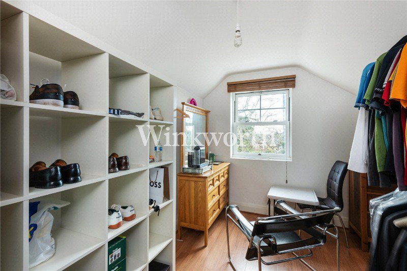 The second floor provides a further bedroom with an adjoining dressing area, a shower room, and an additional dressing room. This level also offers plenty of eaves storage.