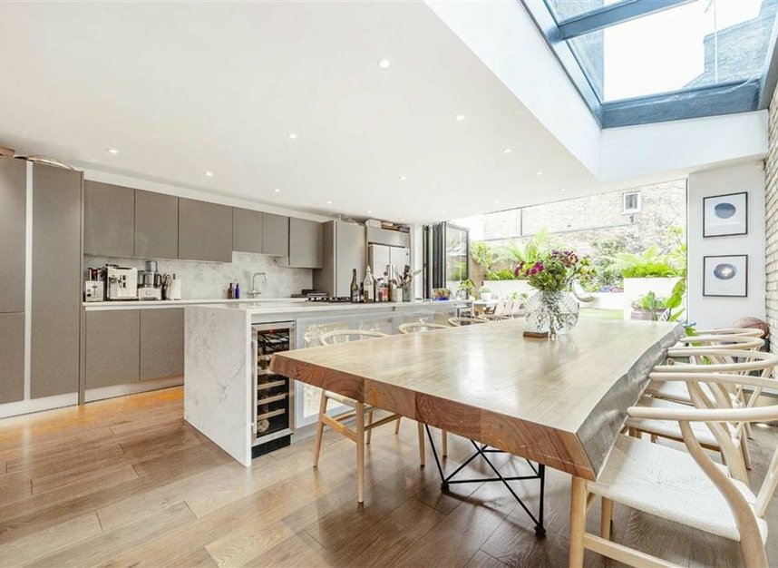 This exceptional mid-terrace freehold home has been meticulously refurbished and expertly extended to create a property ideal for both family life and entertaining. Providing over 2,280 sq.ft of refined living and entertaining space over three expansive floors with a landscaped, south facing garden.
