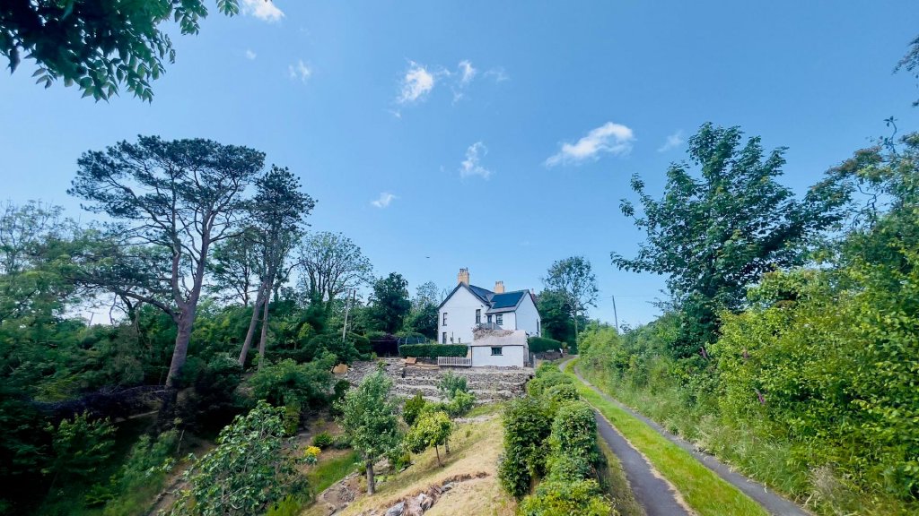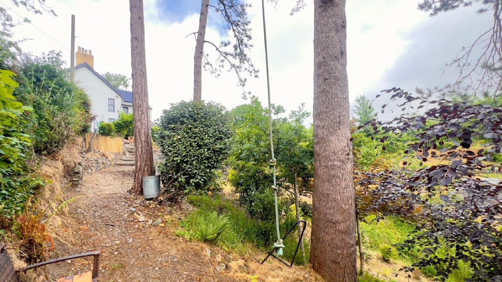 Occupying a beautifully maintained plot of approximately one acre, the grounds offer a wonderful mix of mature landscaping and natural beauty. Tiered lawns, fruit trees, wooded sections, and sheltered seating areas combine to create a tranquil outdoor retreat, while the polytunnel with grapevine appeals to those with gardening ambitions. Ample driveway parking, along with both integral and detached garages, provides excellent storage and workshop potential.