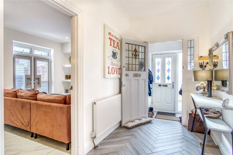 - Entrance vestibule leading to a spacious hallway