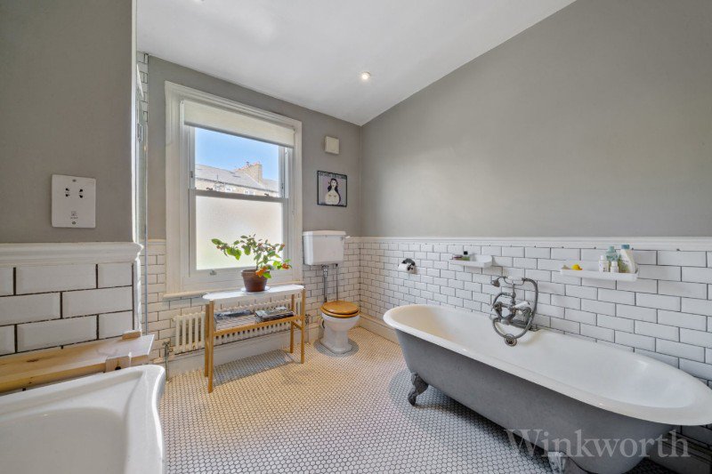 The family bathroom is thoughtfully designed, incorporating a equally finished to the highest standard, offering exceptional space, bespoke fittings, and tasteful design.