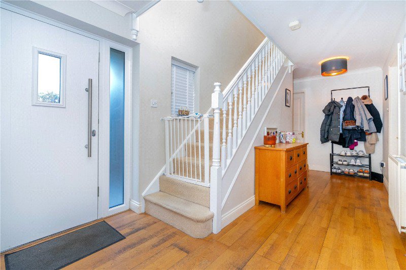 19’1 x 7’8 a striking reception greets you, a generous and open space with side stairs to the first-floor accommodation, radiator, power points and finished with engineered oak flooring.