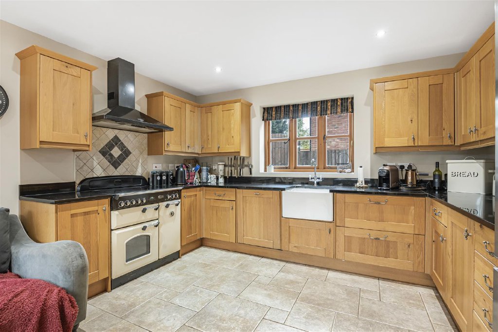 A spacious entrance hallway leads to the light and spacious kitchen/breakfast room at the rear of the property, which enjoys fabulous views over the garden and open countryside beyond.