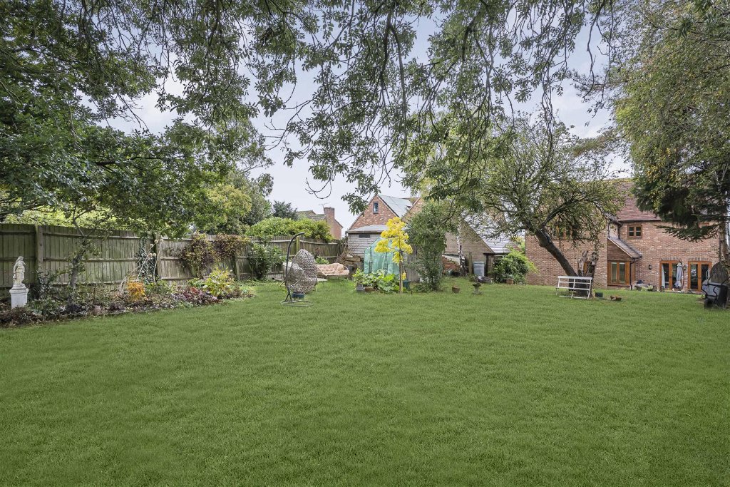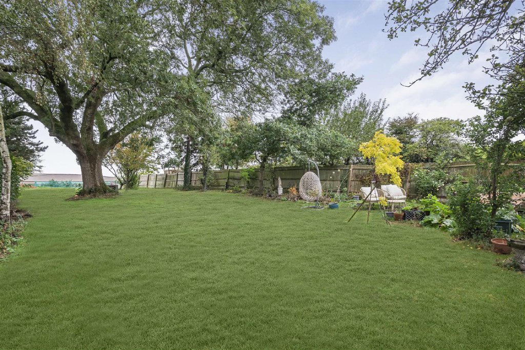 The expansive lawn area is complemented by mature trees and shrubs, ideal for both the keen gardener and young children alike.