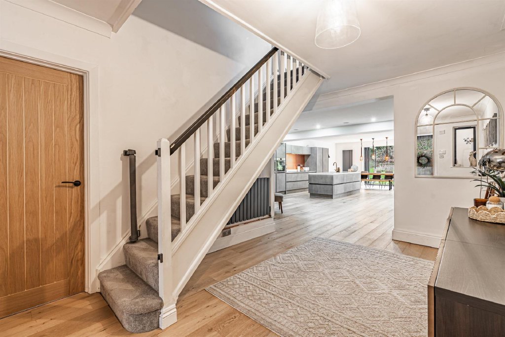 Alderbrook, once a modest dormer bungalow, is now unrecognisable, having been transformed into a stylish family home that ticks all the boxes for open-plan living, modern luxury and everyday practicality. Buyers will feel reassured by the extensive upgrades, including a new roof, new boiler, new windows throughout, and, under the current owners, an impressive two-storey extension. This addition has created a magnificent open-plan kitchen, dining and sitting area at the heart of the home.