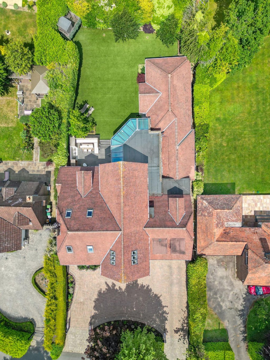 Step inside through the oak-framed entrance with impressive double doors and discover approximately 6,565 sq. ft. of substantial living space arranged over three floors. The ground level has been thoughtfully designed to offer an ideal blend of family living and exceptional entertaining space, enhanced by the addition of the indoor pool complex.