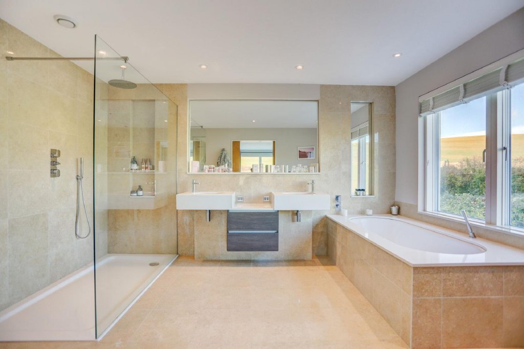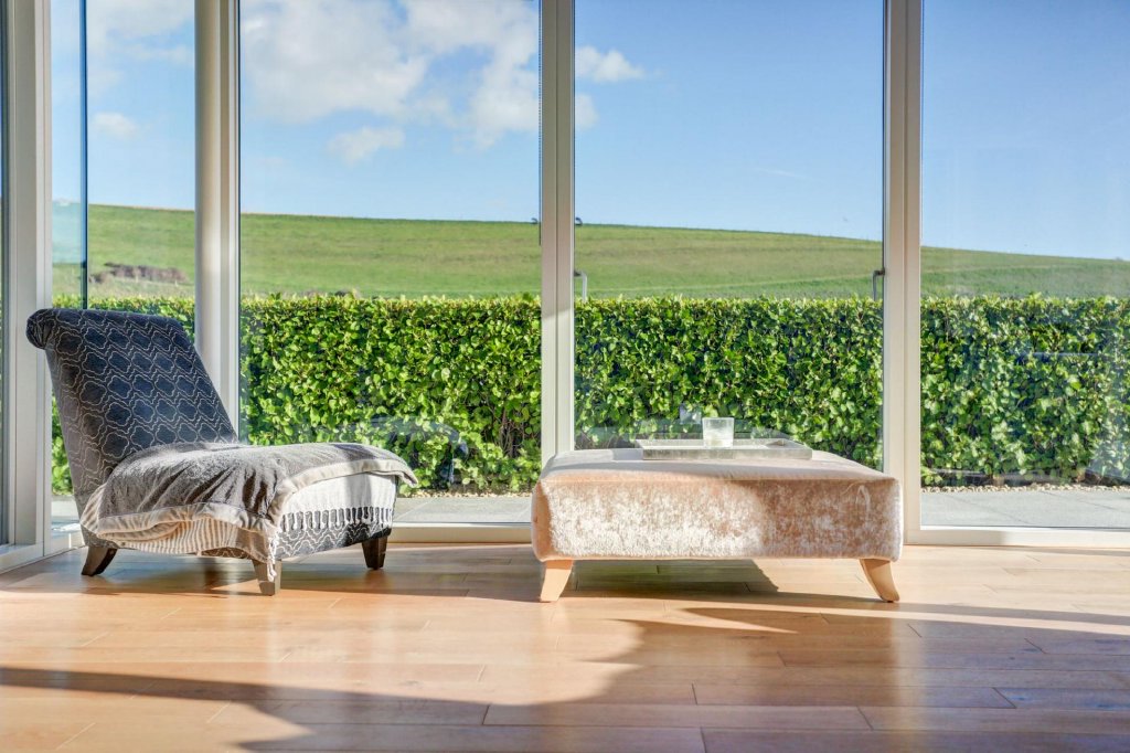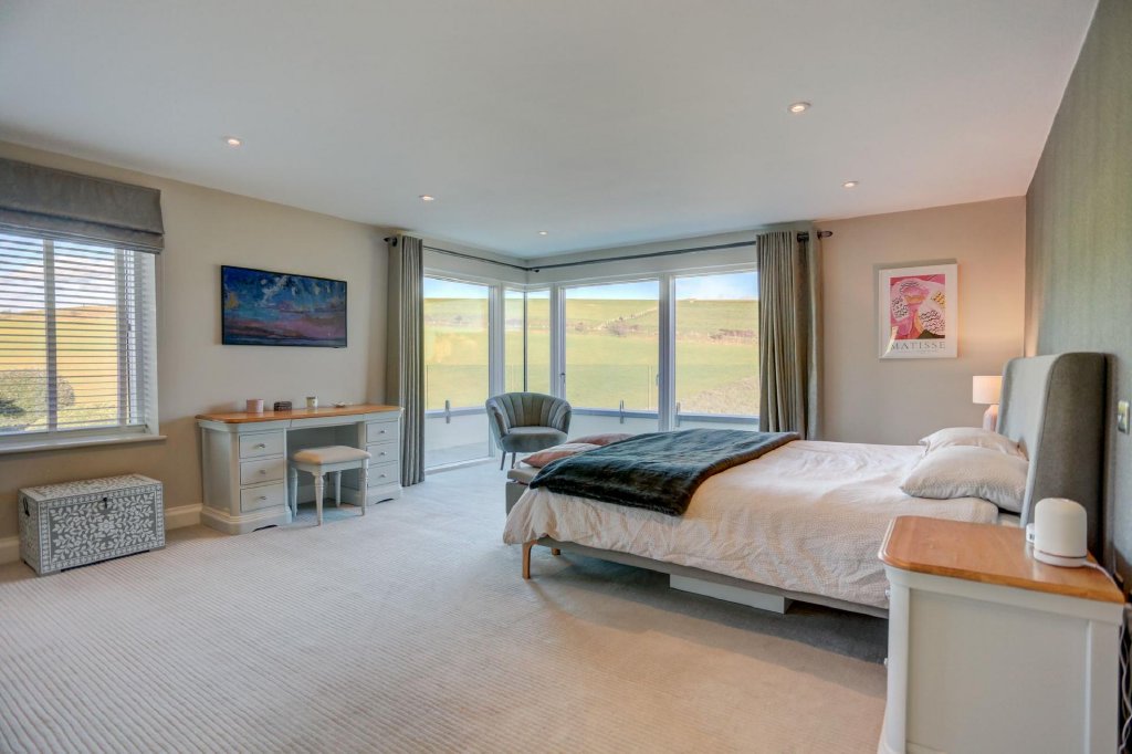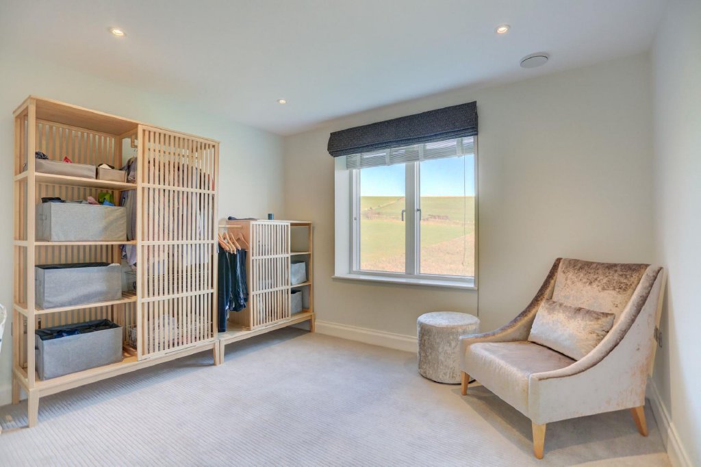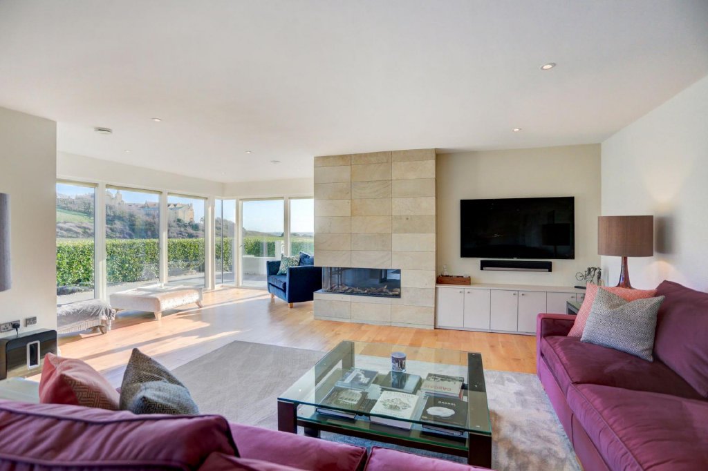 Intelligently designed with a heat exchange and air filtration system, solar PV system which charges a Tesla battery, EV charging point, upgraded home automation systems throughout ensure an impressive and eco-friendly A rated seaside abode, immediately ready to move in. Underfloor heating and hot water are controlled by a Heatmiser Neo system with wall mounted sensors connected by a Wifi mesh. The home can be future-proofed with the addition of a lift – it is fit to receive a lift serving three floors with wiring in situ – currently the space is utilised as useful storage on each landing.
