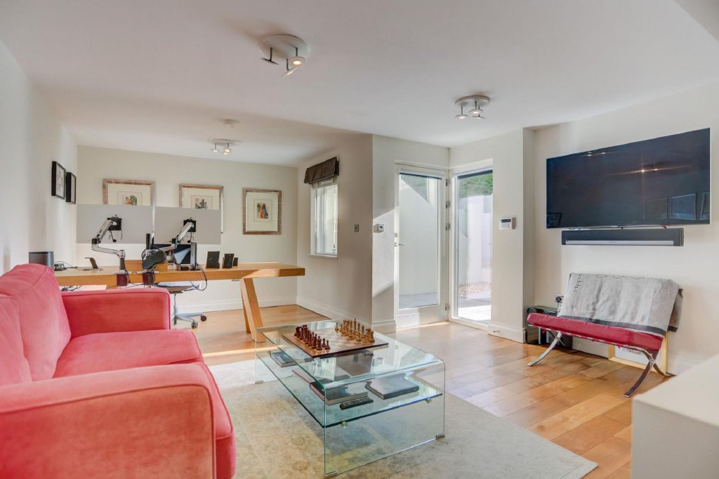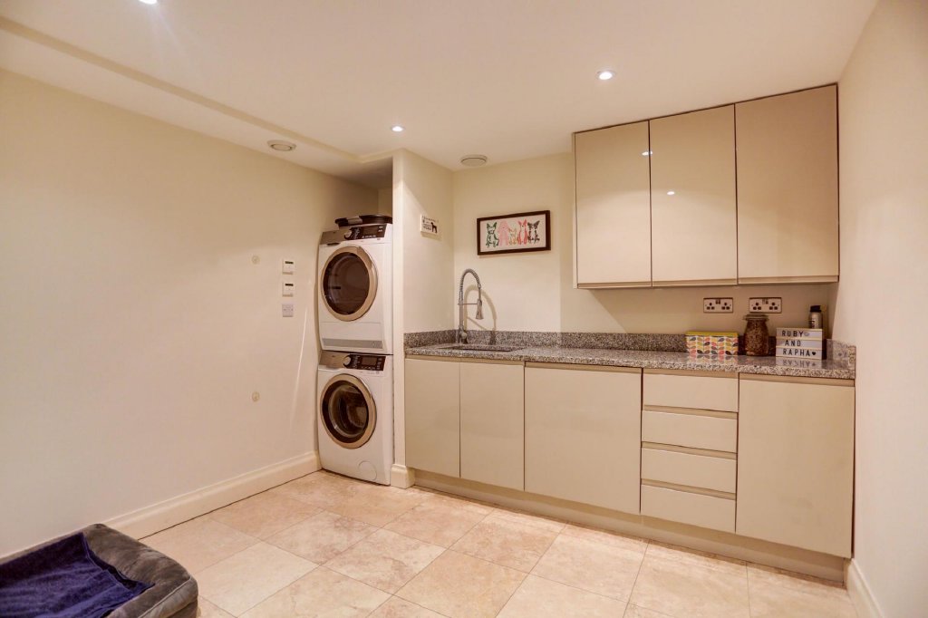 On the lower ground floor, the versatile layout offers a mirrored home gym, which could also lend itself to home cinema or media room use. There is a handy utility room, plant room which houses all the exceptional tech to smartly run the home and an abundance of storage options including several bult-in cupboards as well as the internal double garage. At the front of the property is a unique office space or bedroom 5 with ensuite, benefiting from its own private entrance, perfect for a practice/studio space for ensuring privacy from the home as an option, or easily combining from the main home as another.