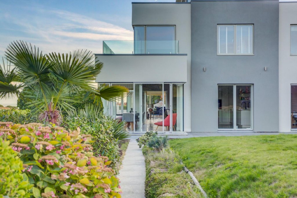 This impressive, detached house has floor to ceiling windows and sliding glass doors throughout. By capturing the surrounding beauty of the south coast, this exquisite home is filled with light achieving an air of tranquillity. Set across four floors, the property is briefly comprised of a stunning living area, a statement kitchen, five bedrooms each with an en-suite shower or bathroom, a downstairs w.c., utility room, a study and a versatile gym or cinema room. On the top floor is a quiet retreat/yoga room with a roof terrace. There is a substantial internal garage, a garden shed with full power and internet access, a private granite driveway, several multi-level balconies and terraces and a large private rear garden.