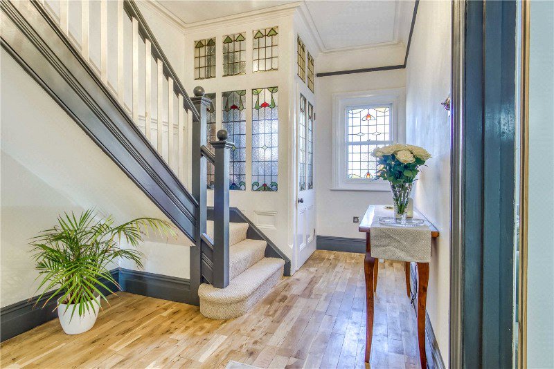 - Stunning entrance hall with stained glass and original oak flooring