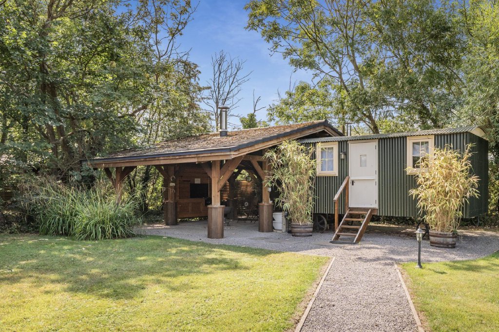 Beyond the formal garden, a charming outbuilding with WC offers practical support for outdoor entertaining, while a separate driveway leads to the thriving leisure enterprise. Here, mature woodland is threaded with softly illuminated pathways that create a magical, almost fairy-tale atmosphere as they wind between three individually styled glamping huts. Each hut has been thoughtfully positioned to provide privacy and an intimate connection with nature, and all are beautifully equipped with a wood-burning stove, stylish en-suite shower room, and private covered outdoor area. These covered spaces are designed for all-weather enjoyment and include a hot tub, outdoor kitchen, fire pit, hammock, and comfortable seating which creates a luxurious retreat experience in the heart of the countryside. The current layout accommodates three huts, but with planning permission in place for a further three, there is enormous potential to expand the business or enhance the lifestyle offering even further. The result is a property that not only provides a stunning home environment but also offers exceptional opportunities for leisure, entertaining, and income generation in a truly idyllic rural setting.