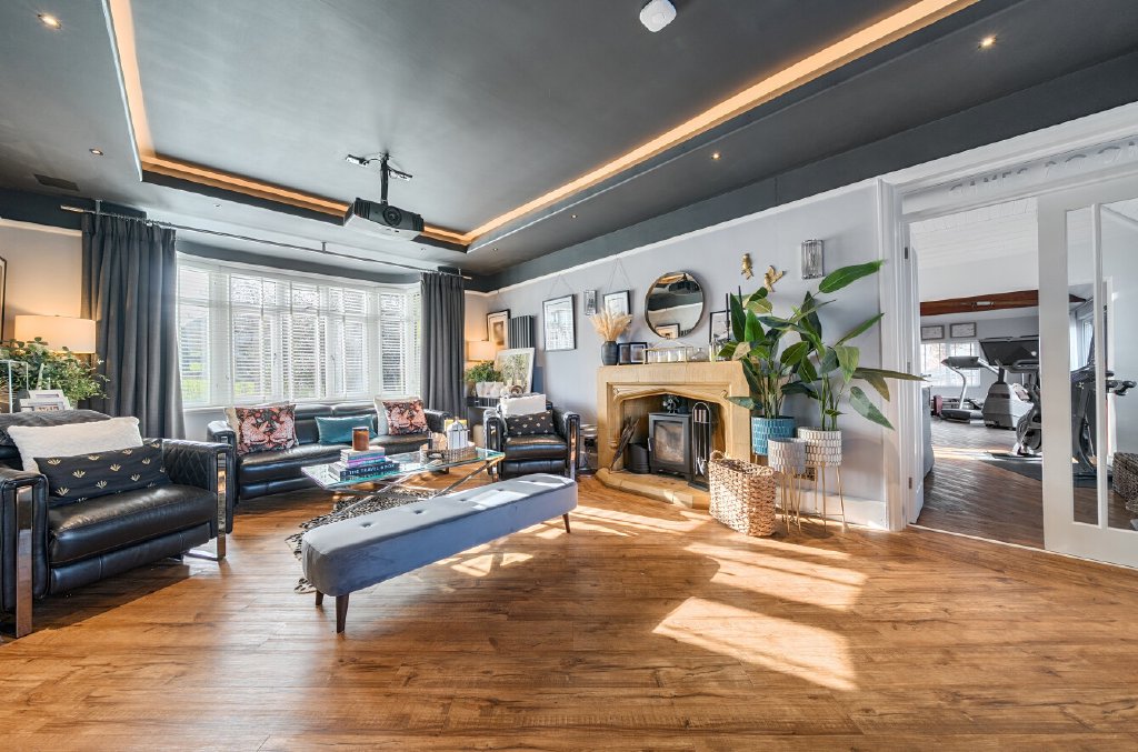 The sitting room enjoys views to both the front and rear, featuring an original open fireplace and currently arranged as a cinema room for the whole family to enjoy. From here, doors open into the extensive games/family room, a superb space designed for entertaining. It offers dedicated areas for playing pool, relaxing in the integrated indoor hot tub, or opening the bi-fold doors onto the rear entertaining terrace to take in the stunning views.