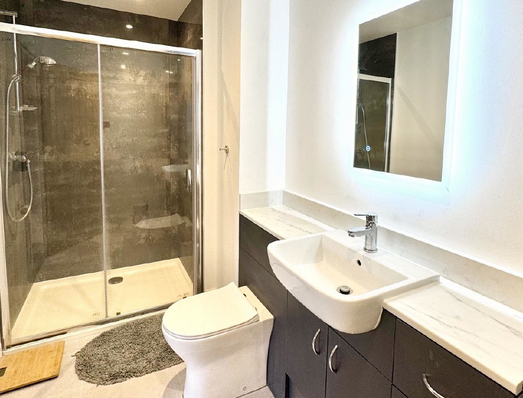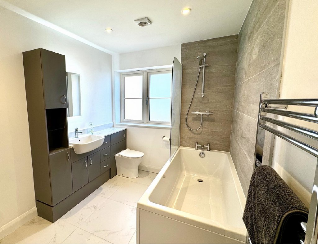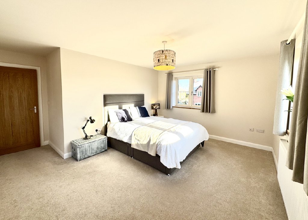 Upstairs, four beautifully proportioned bedrooms continue the sense of quality and calm. The principal suite enjoys fitted twin wardrobes and a private en-suite shower room, while the guest bedroom also benefits from its own en-suite. Two further bedrooms are served by a contemporary family bathroom, completing a layout that works perfectly for both family life and visiting guests.