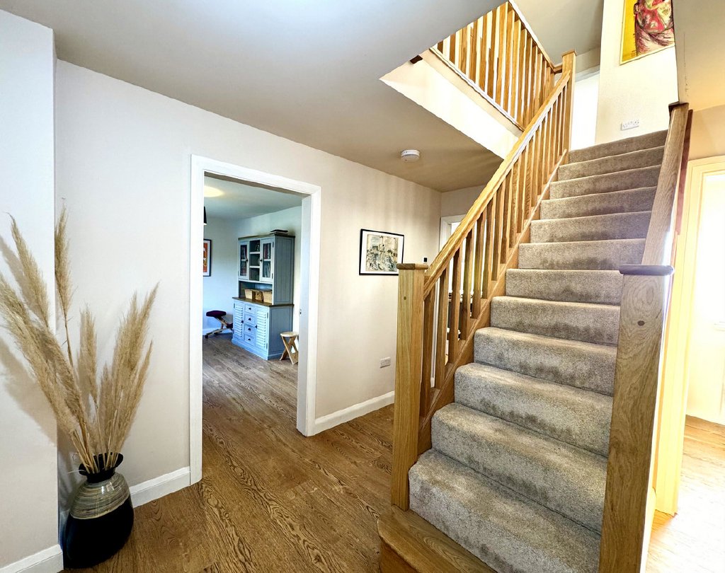 A particularly exciting feature of Cherry Blossom House is the detached double garage building, which includes a highly appealing first-floor home office/studio/annexe space with WC. This offers remarkable potential for (subject to necessary planning permission) into independent living accommodation, guest suite, holiday let, gym or business space – a valuable and increasingly sought-after asset.