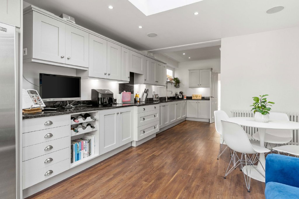 Upstairs, there are two superb bedroom suites with dressing rooms and luxury en-suites, plus two further double bedrooms and a beautifully-designed contemporary family bathroom. High-quality fittings include Duravit, Hansgrohe and Crosswater, with underfloor heating to the principal en-suite.
