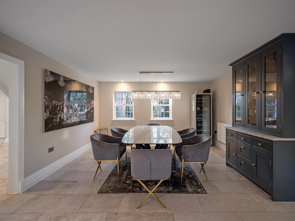 A luxurious cinema room with Sonos surround sound and karaoke provides the perfect setting for entertainment. Four beautifully appointed double bedrooms each feature their own elegant en-suite and private dressing room, while an additional office offers ideal versatility and can be used as a fifth bedroom if required.