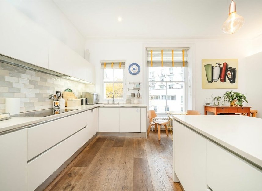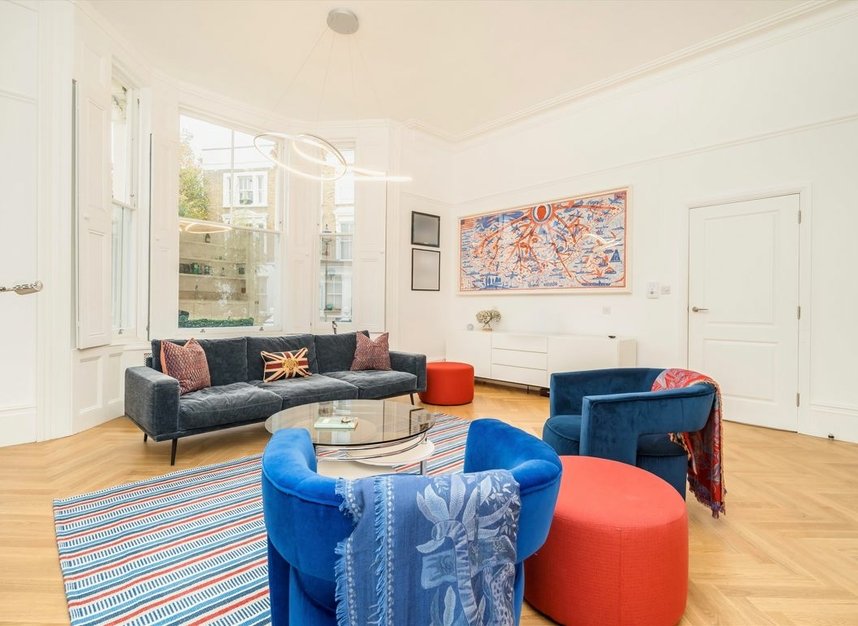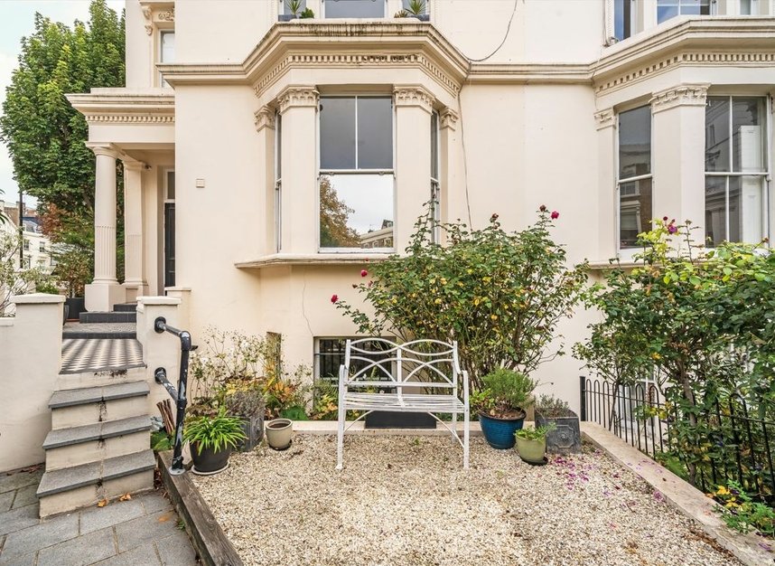 Set within a grand white stucco-fronted building, this elegant five bedroom family home spans four light-filled floors and blends period charm with modern versatility. The property features three bathrooms, two of which are en suites, along with two generously sized reception rooms, a dedicated study area, and a secluded small private triangular garden. The raised ground floor includes a self-contained flat, ideal for guests, staff, or rental income, offering additional flexibility and privacy within this beautifully appointed Little Venice residence.