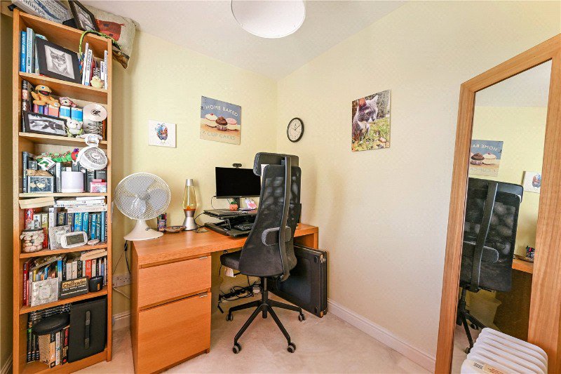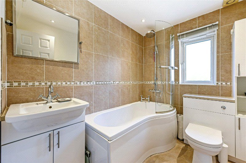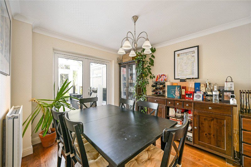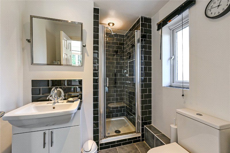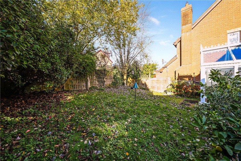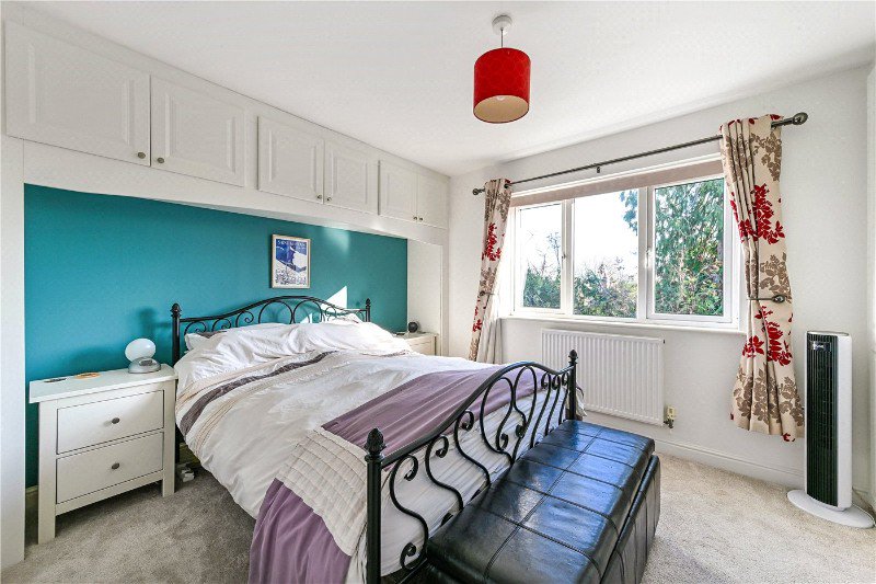 Upstairs, the first floor offers four well-arranged bedrooms, each with its own distinct character. Every bedroom enjoys peaceful views of trees, adding a lovely natural aspect to each room. The principal bedroom enjoys large windows, an en-suite and fitted cabinetry and wardrobes, while the remaining three bedrooms provide generous and flexible accommodation for family, guests or home working. The family bathroom is smartly appointed, featuring a modern suite with a shower-over-bath.