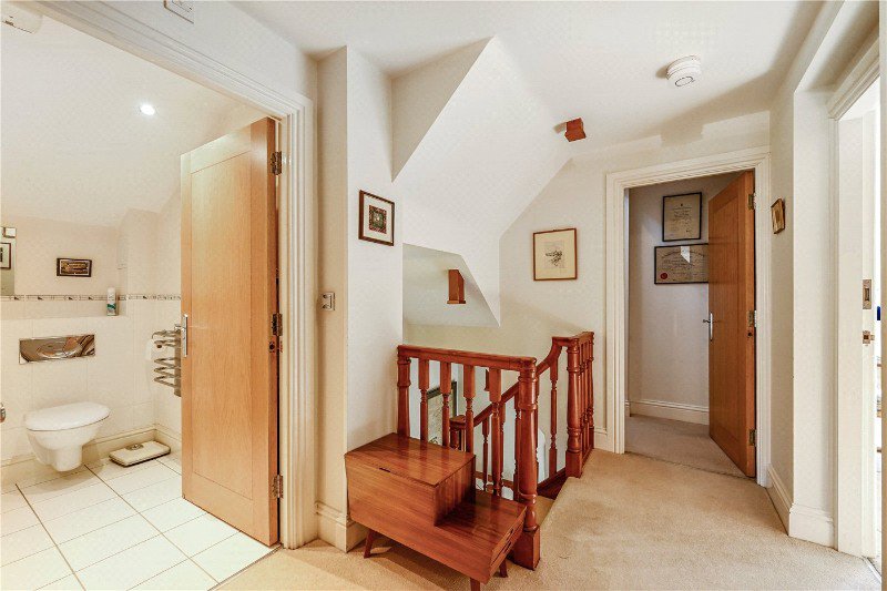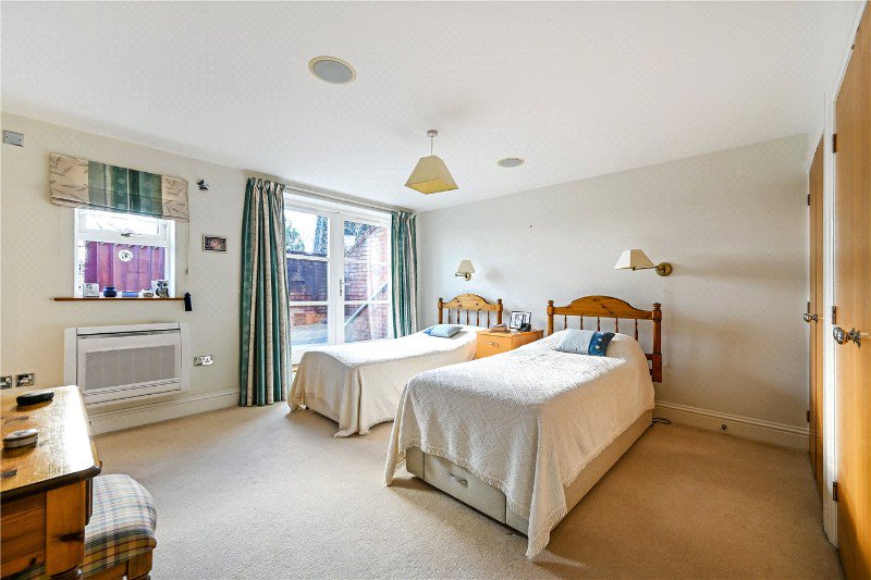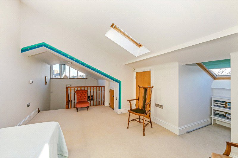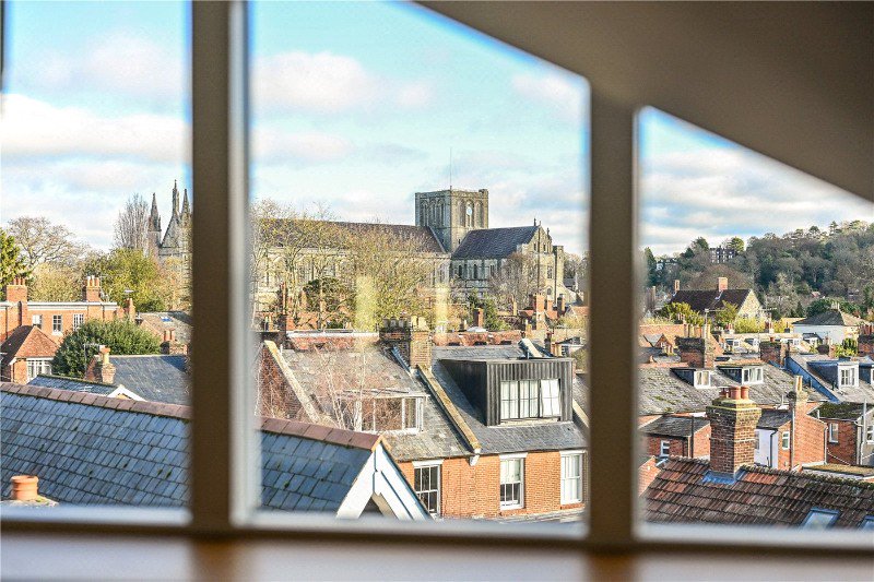 The top floor is home to a dual-aspect third bedroom, another superbly sized room, this time with good eaves storage and striking views over Winchester’s rooftops towards the cathedral. This elevated vantage point offers a rare sense of privacy and outlook, creating a tranquil retreat at the top of the house.