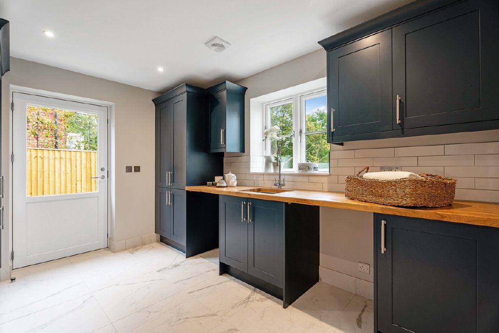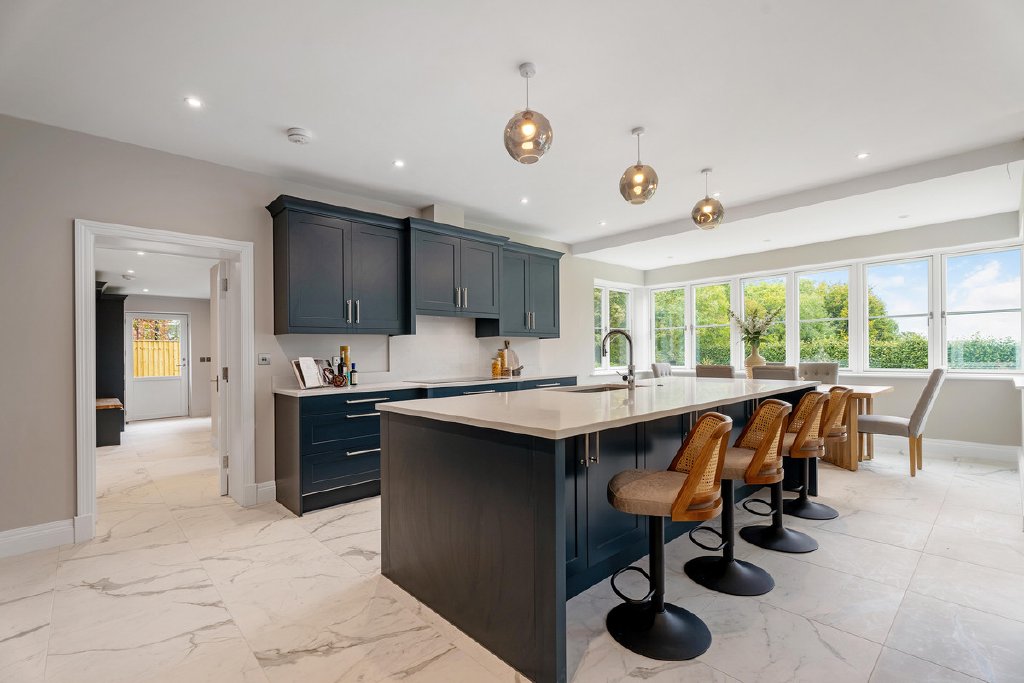 At the heart of the ground floor is the expansive open-plan kitchen and breakfast room — a superb space for family life and entertaining alike. Large glazing ensures an abundance of natural light and creates a seamless connection with the garden, ideal for summer evenings or relaxed weekend gatherings. A formal drawing room provides a quieter, more intimate setting for hosting or unwinding.
