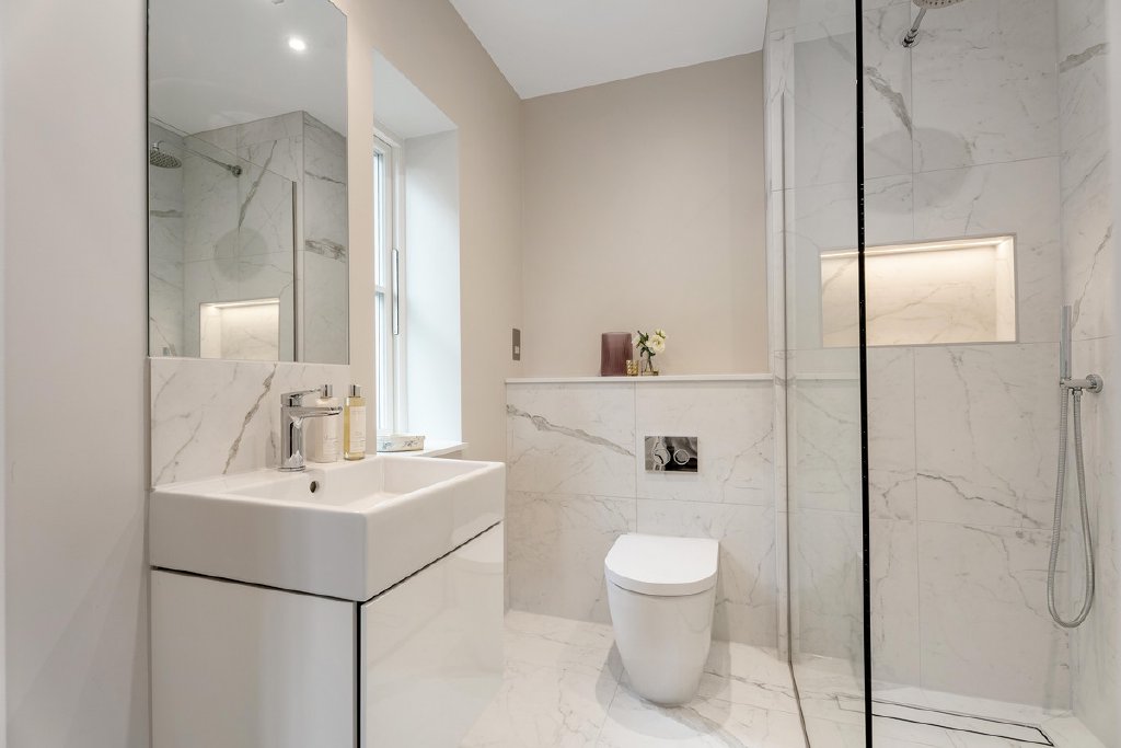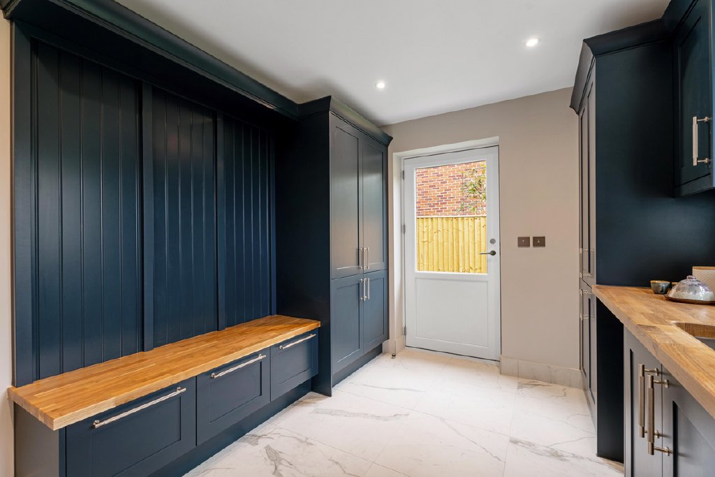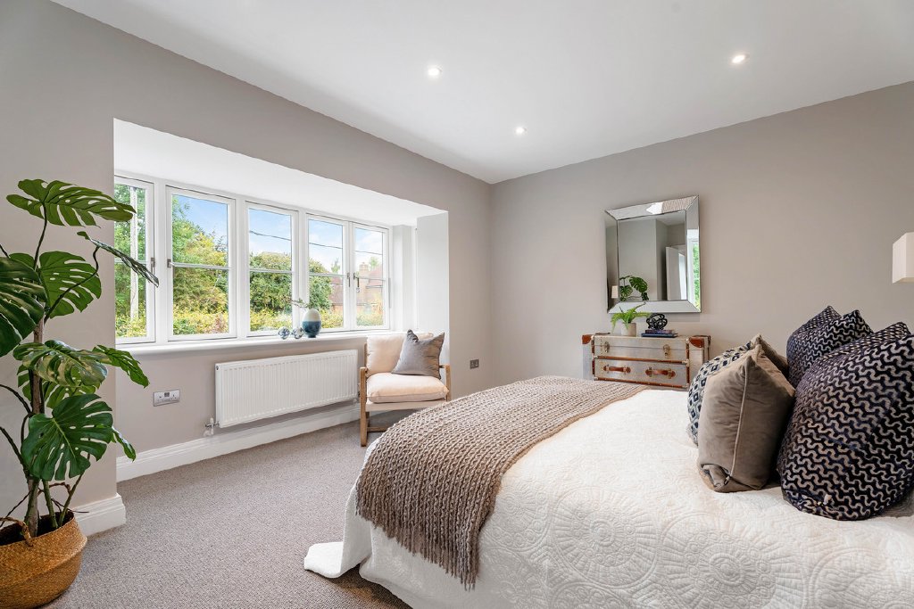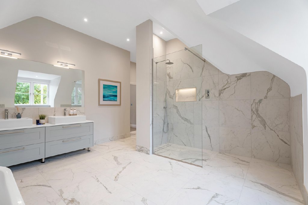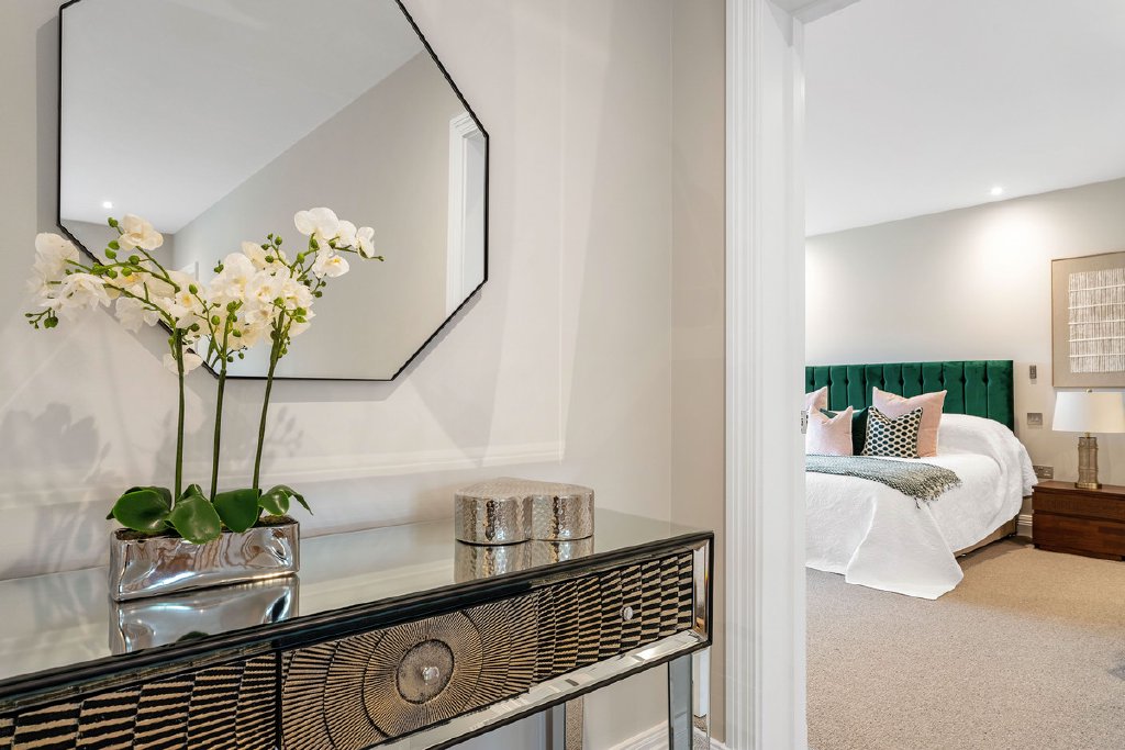 Upstairs, the principal suite forms a private retreat, complete with a stylish ensuite featuring a freestanding bath and a bespoke dressing room designed for both practicality and elegance. Two further bedrooms benefit from their own ensuites, providing comfort and privacy for family or guests. All rooms are finished to a high standard throughout.