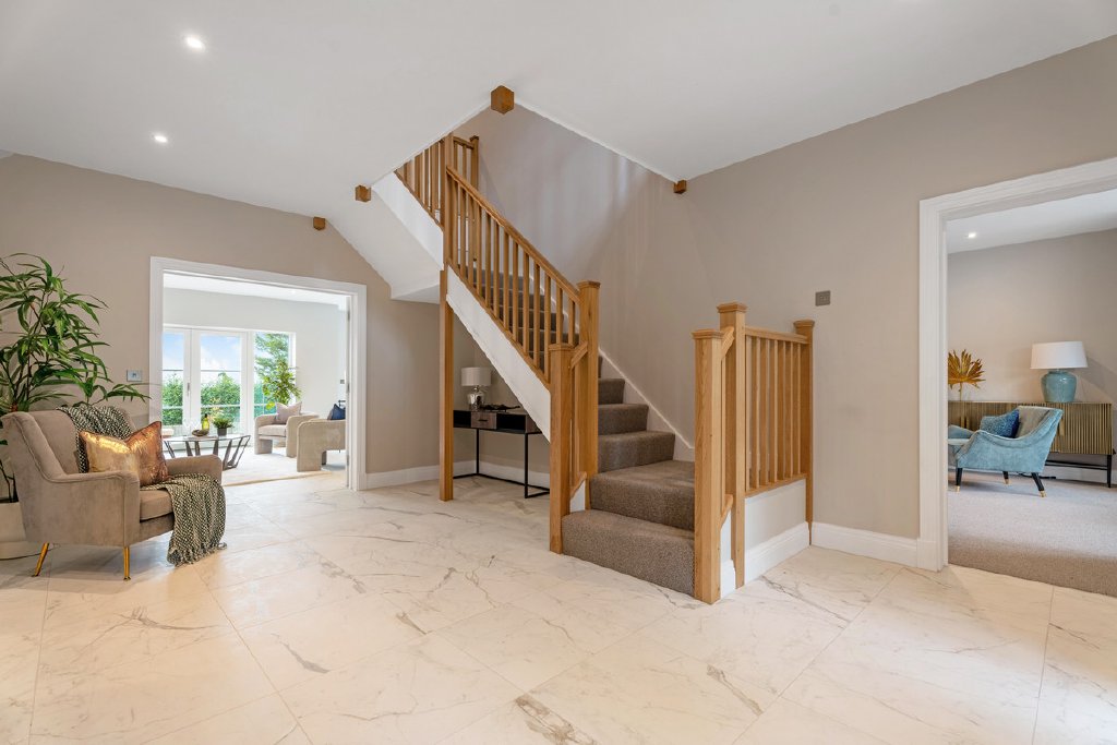 Flexibility is an important feature of the property. The ground-floor study offers a dedicated workspace, but with an adjoining cloakroom incorporating a wet-room style shower, it also functions well as a sixth bedroom or guest suite when required.