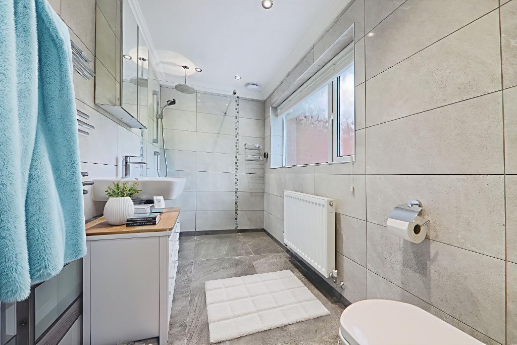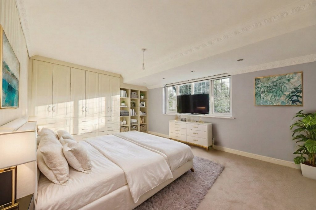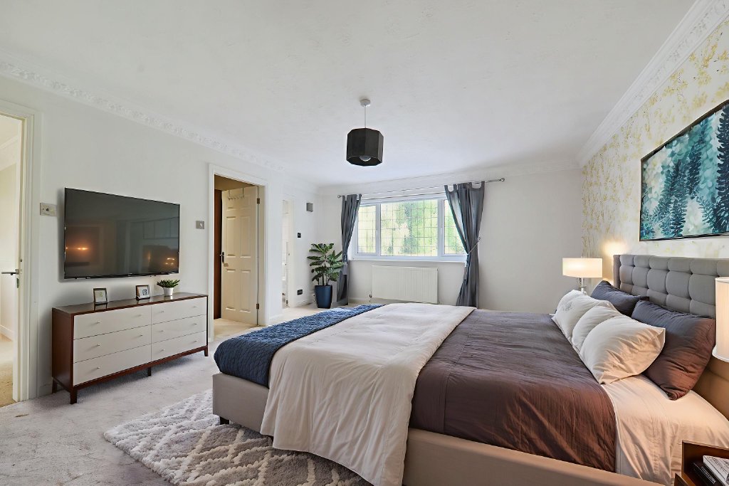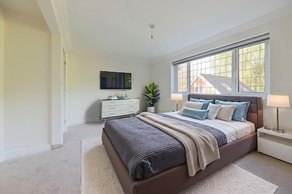 Upstairs, the layout continues to work very well for growing families. All five bedrooms are proper doubles, offering flexibility for children, guests or working from home. The main bedroom includes a walk-in dressing room and an en-suite, while the family bathroom is smartly fitted.