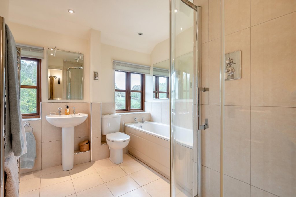 Upstairs, the first floor holds a fantastic surprise. Alongside two exquisite en-suite bedrooms, stone steps lead up to what would have been the sitting room of the original cottage. This versatile space, currently still a sitting room with fireplace and wood-burning stove, could be transformed into a luxurious bedroom, a self-contained annexe or a holiday let (subject to any necessary consents), a large