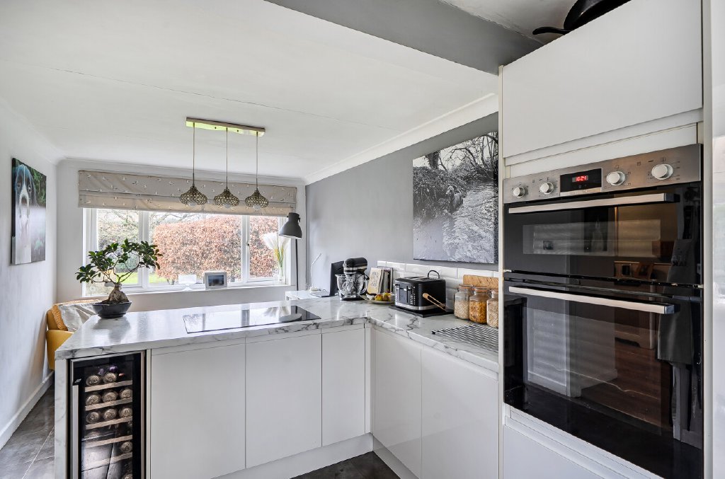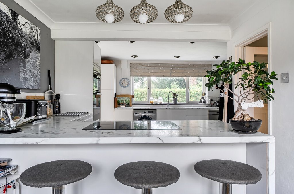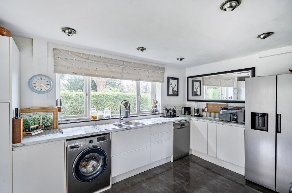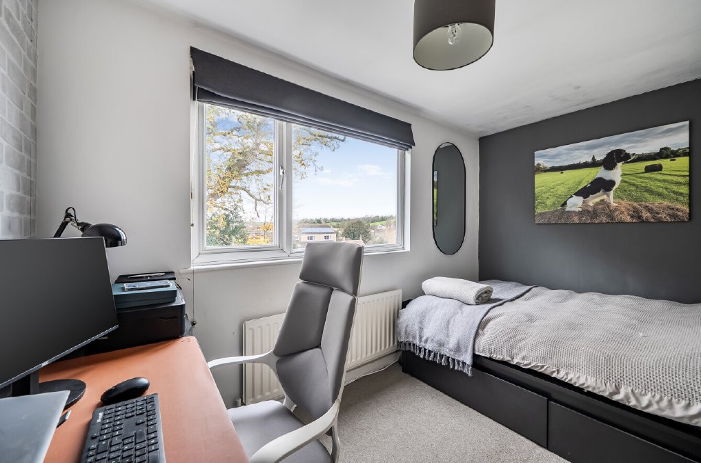 Set back from the village’s high street, the house offers generous accommodation that has grown with the owners’ family over 25 years. ‘We moved to Belltrees from London as a family of four and quickly became five. It has been the perfect place to raise our children in a truly family-orientated village.’ Light, airy rooms are arranged over two floors, with adaptable spaces suited to modern family life. The ground floor features an open-plan kitchen that works equally well as a kitchen/diner or kitchen/office. A replaced porch provides excellent storage for outdoor and sports equipment, and the bathrooms and cloakroom have been updated. Upstairs are four well-proportioned bedrooms offering flexibility for family, guests or home working. ‘The great thing about Belltrees is that there is so much space to socialise or for individual time to work or relax.’