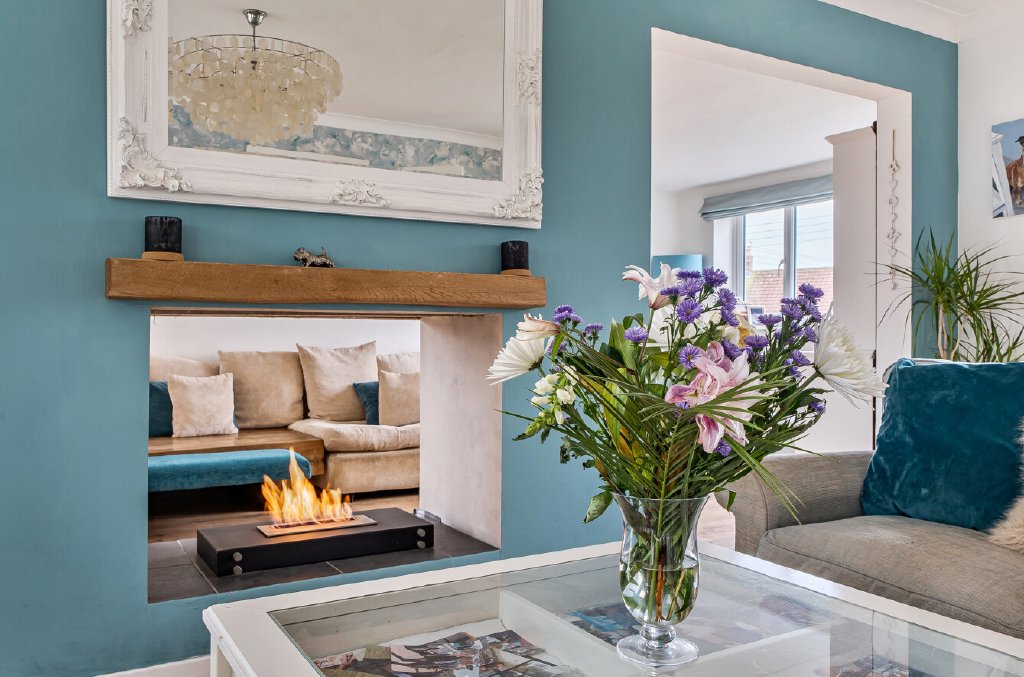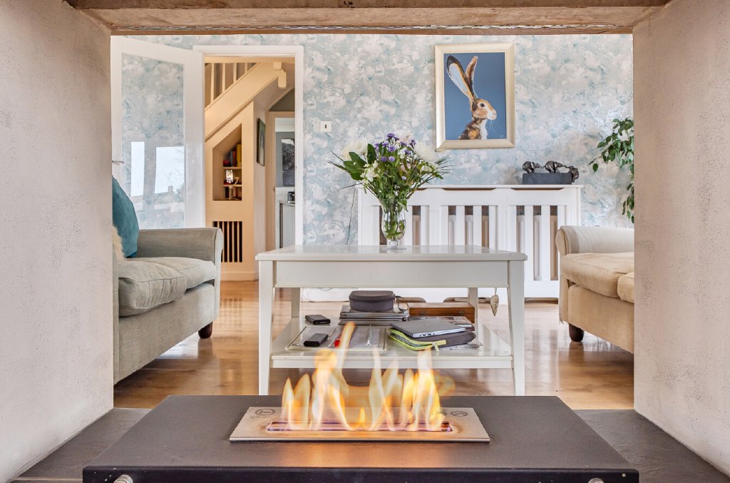 ‘My favourite view is from the sitting room at night when the church’s stained glass is lit up while summer evenings bring hot air balloons and birdsong over the village.’