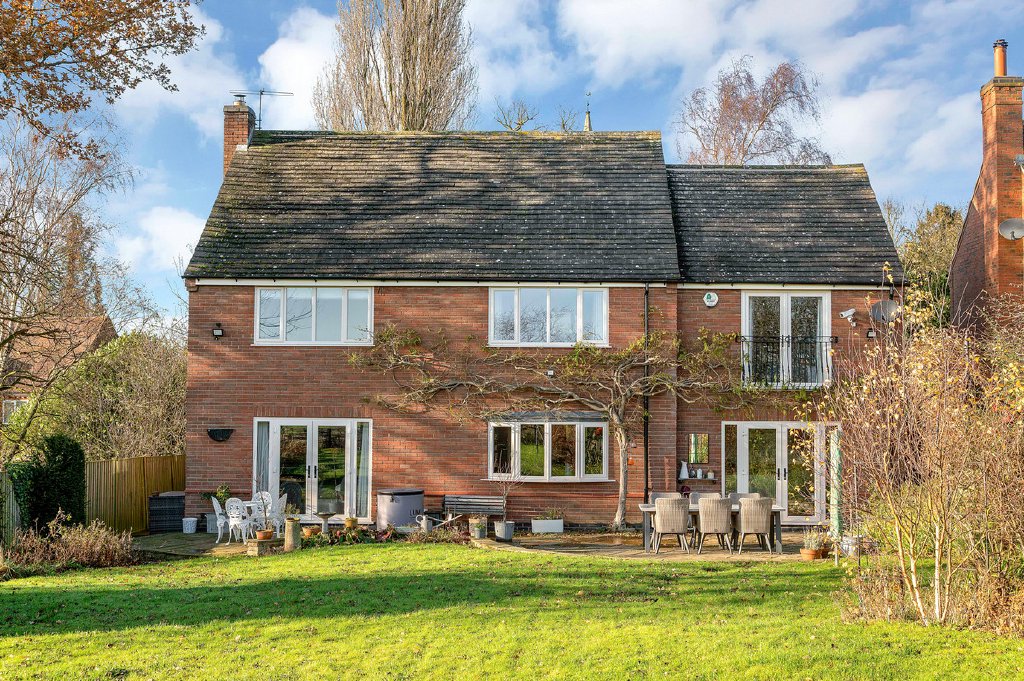 Enjoying a south easterly aspect, the rear garden which is mainly laid to lawn, is fully landscaped and backs directly onto rolling countryside. French doors from the sitting room and kitchen provide access to large terrace with outdoor lights which spans the full width to the property. A further seating area close to the rear boundary has been created to catch the late evening summer sunshine.