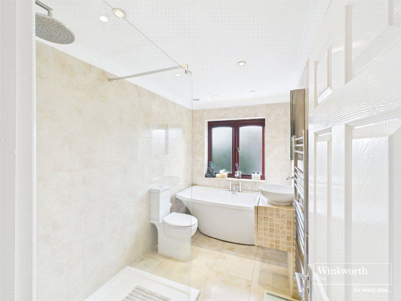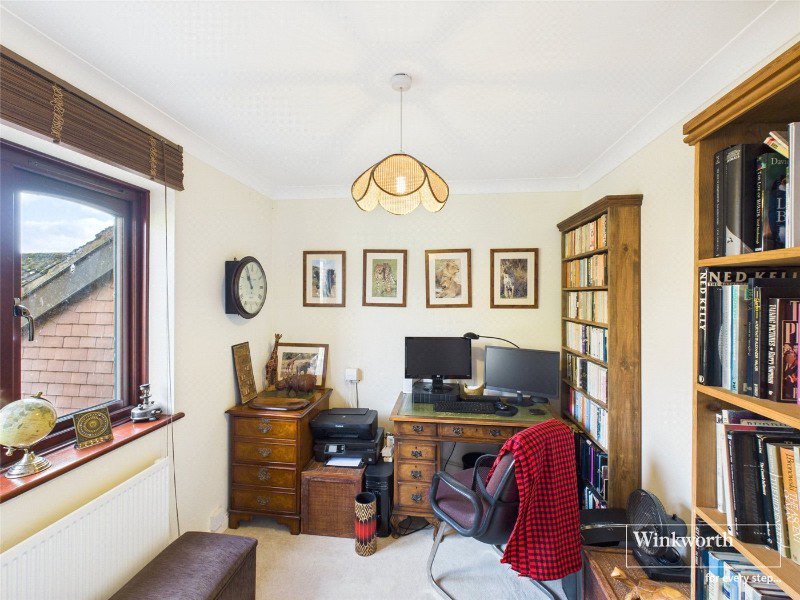 Outside, the low-maintenance rear garden offers a peaceful and practical outdoor space, featuring a generous paved patio, established planting, and a deep pond. The current sellers are happy to either leave the pond in situ or have it filled in to suit the needs of the new owners.