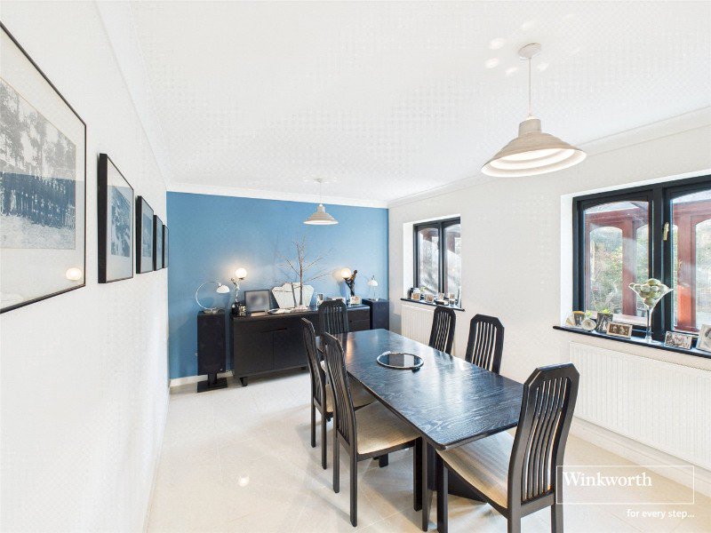 A separate dining room provides an excellent setting for family meals and entertaining, while the kitchen, with its front aspect, leads through to a substantial utility room ideal for families, pet owners, and everyday practicality, with direct access to the garden and garage.