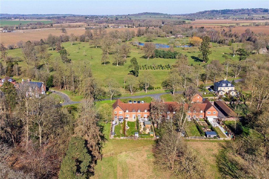 This beautifully appointed end-of-terrace home represents the essence of effortless living in a truly unique setting, boasting uninterrupted views across the grounds and countryside beyond. The property is enhanced by a meticulously designed south facing garden, complete with a stylish garden studio with heating and air conditioning, easily adaptable to many requirements. The garden also enjoys direct access to the surrounding parkland. In addition, the home benefits from adjacent parking as well as a second dedicated space within the nearby car barn. Along with EV charging points opposite the property.