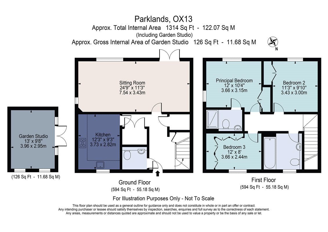 Upstairs, there are three double bedrooms. The principal bedroom includes an en-suite shower room, while a stylish family bathroom serves the remaining rooms. All bedrooms are fitted with built-in wardrobes, with the third bedroom, currently used as a study, featuring additional bespoke cabinetry. Throughout the home, high-quality shutters add a refined and contemporary finish to every window.