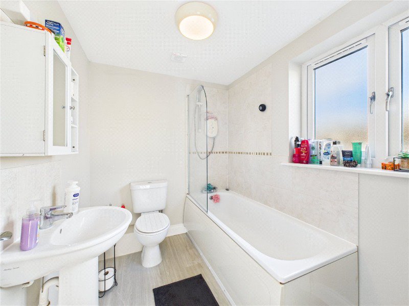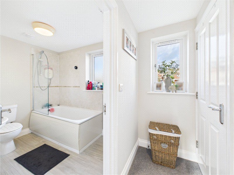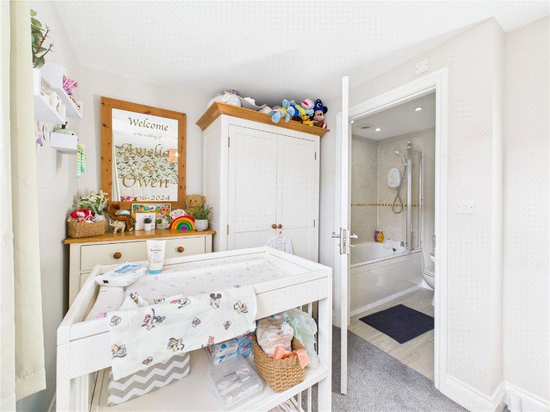 The first floor landing includes an airing cupboard and stairs rising to the second floor. On this level, Bedroom 2 features a front aspect window and its own ensuite bathroom, offering a comfortable private space for guests or family members. A separate family bathroom serves this floor.