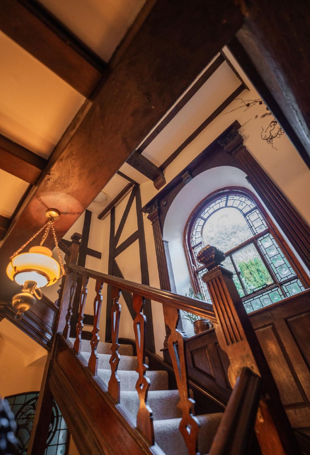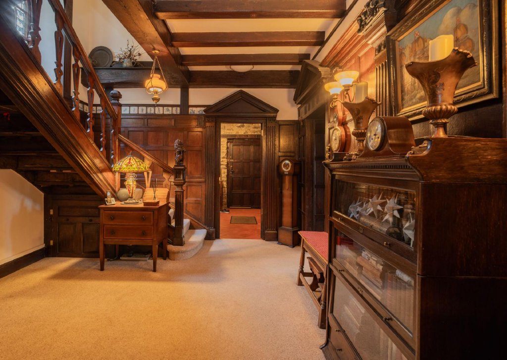 - Extensive period features: hand hewn ceiling beams, exposed stone walls, Victorian wood panelling