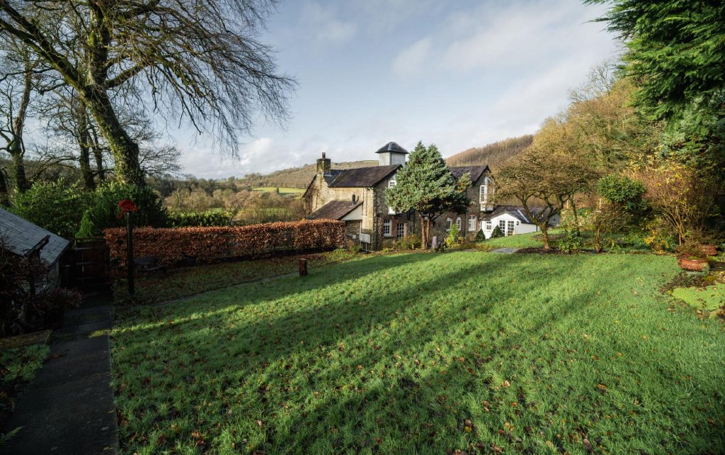 Stone-built and elegantly proportioned, the lodge occupies an elevated setting with sweeping views across the Teifi Valley, set within approximately 2.5 acres of gardens, productive land and riverside meadows. The position offers both privacy and drama, with the ever-changing landscape providing a remarkable backdrop throughout the seasons.