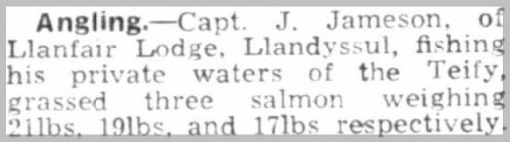 The property’s sporting legacy is well documented. An article in the Western Mail (1941) records Captain Jameson landing the season’s first salmon from “Llanfair Lodge waters”, confirming the home’s long-standing association with the river and the enduring quality of its fishing rights well into the 20th century. This rich narrative places Llanfair Lodge among the most historically compelling homes in the area.