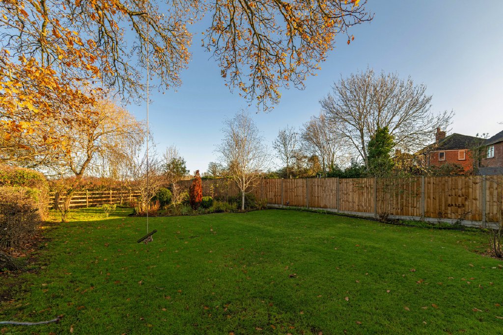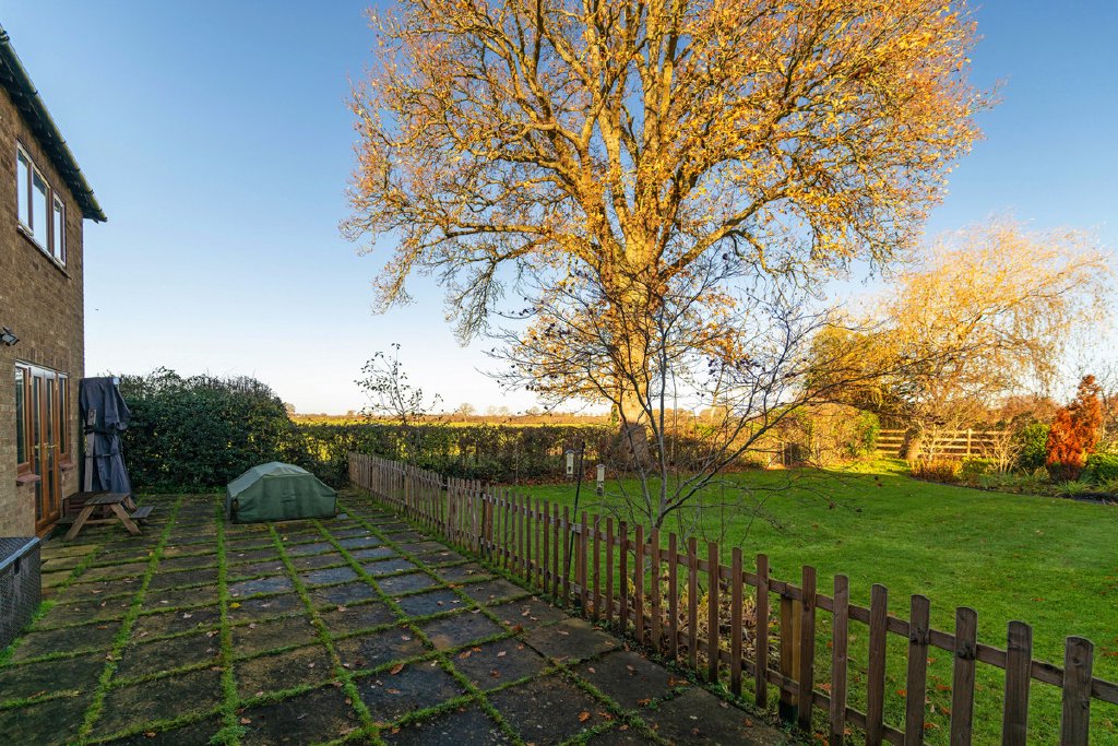 The 0.14 acre plot is particularly appealing with far reaching views across open farmland to the side and rear. The attractive rear gardens are particularly appealing with a variety of flower beds, lawns hedging and a large patio across the rear elevation providing a peaceful place to entertain in the summer months. The garden is sheltered by a large oak tree which has a Tree Preservation Order, whilst the frontage features newly installed entrance gates, a gravelled parking area and access to a double garage, with electric up and over door. The house also has the advantage of an electric charging point for vehicles.